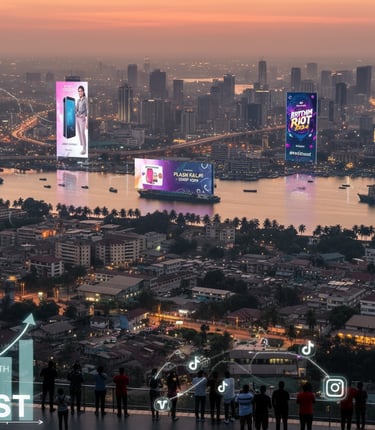Our campaigns put your brand in front of customers all over Nigeria and the world. From Lagos to Bombay, we get people talking about you. (Multi-channel strategy across TV, radio, social, PR.)